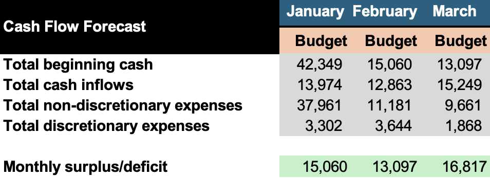 12-month cash flow forecast