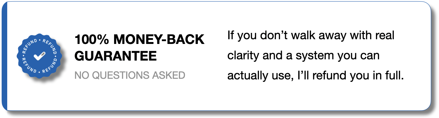 As a member, you’ll have lifetime access to the videos, templates, and exercises, and you can schedule follow-up 1:1 sessions whenever you need them.