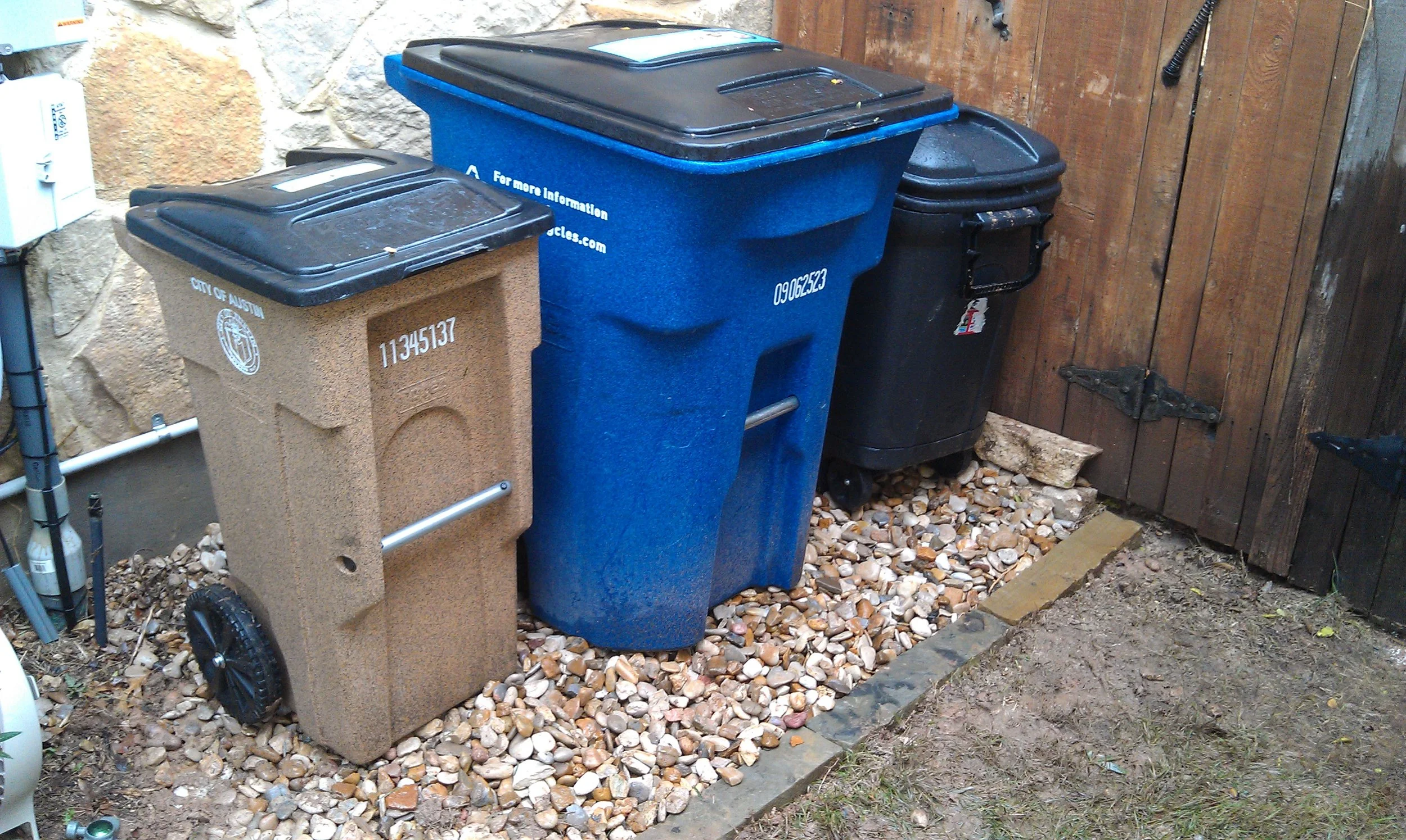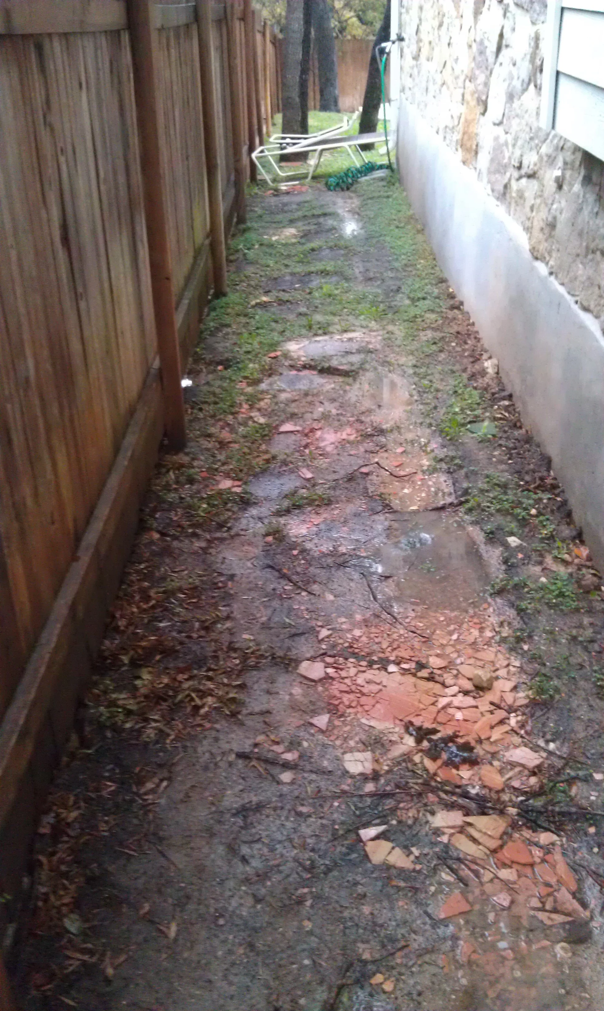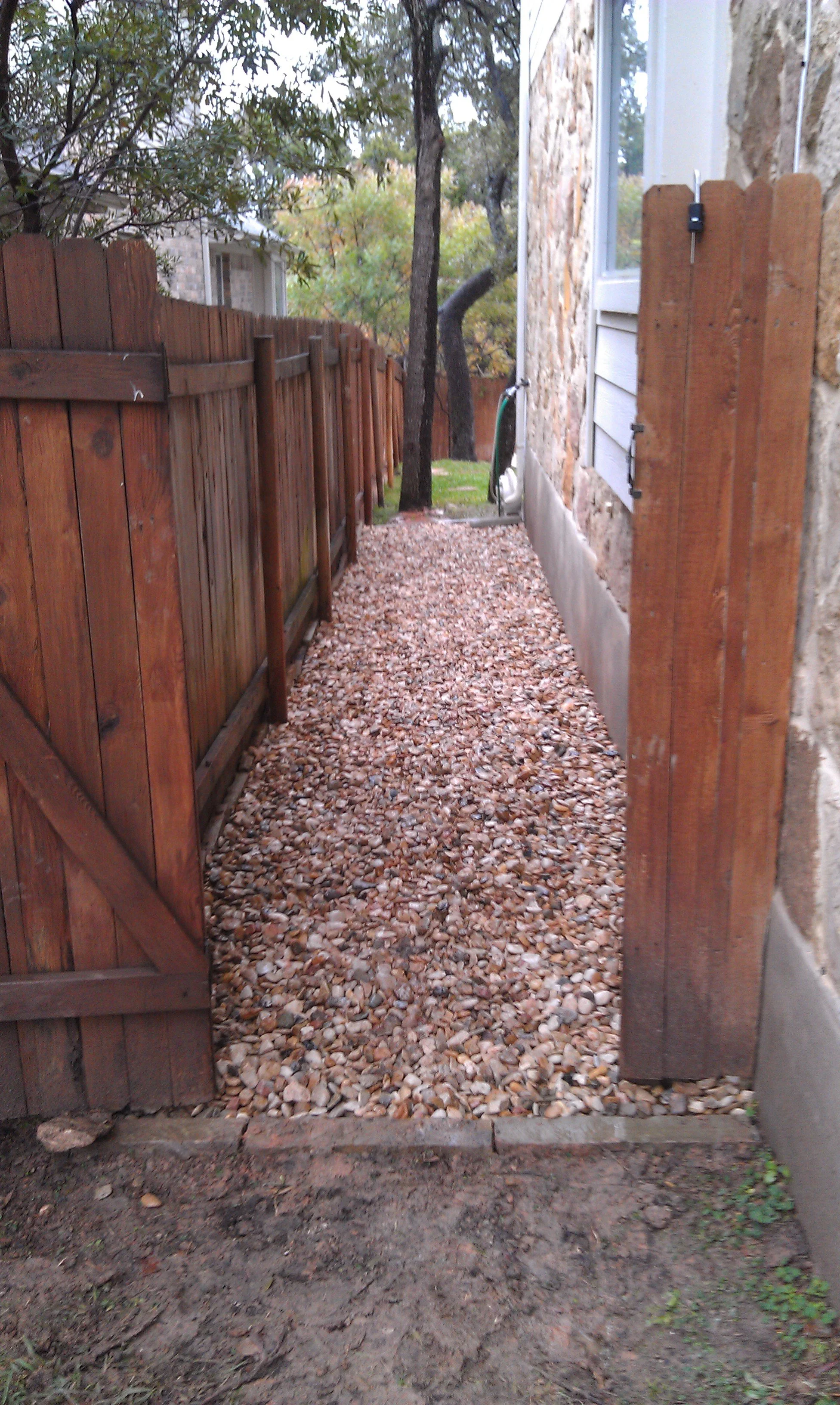 Michael and I had another landscaping job on Saturday. It took about five hours. Everything turned out pretty well (before/after pics below), but the gravel bed around the garbage can ended up looking incomplete, even though it was done to the customers' original specifications. Michael and I probably should have seen this coming and recommended he do a full build-out of the bed when we were still in the planning stages. Anyway, he's having us come back out to extend the bed. We'll get paid for that, and he's going to have us do some other stuff, too. Continued business is a good thing.